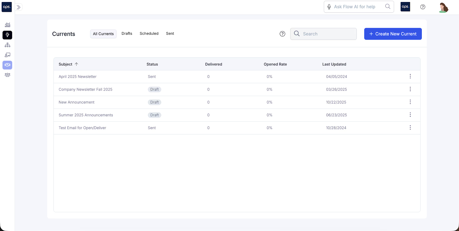 Ops.work offers an email feature that lets you send, track, and manage internal communications.